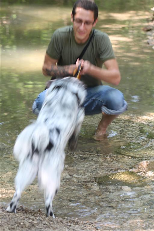 Chowder doesn't like water. He grumbles when it rains. So when we asked him to walk into a gently flowing stream, he thought we were NUTS. After carrying him down the bank, my husband basically had to pull him into the stream, so... Chowder jumped. He bounced in the middle and right across to the other side, then stood there glaring at us. *sigh* Yes, he is prissy.